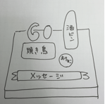 お酒といえばの焼き鳥などのケーキイメージの配置図とお酒のラベルなど細かく画像を指定。