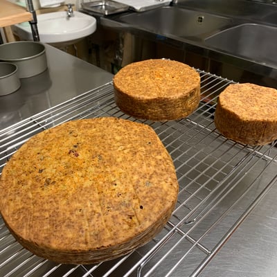 ケーキ制作。出来上がり次第ケーキの完成写真を送らせていただきます。