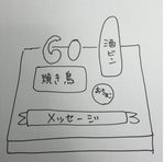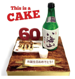 お酒といえばの焼き鳥などのケーキイメージの配置図とお酒のラベルなど細かく画像を指定。