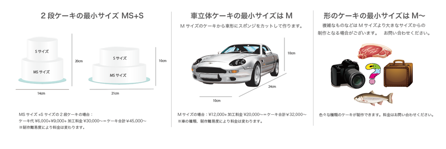 (例え:1段ケーキ or 2段ケーキ or 車の形ケーキ)などをメールにてお知らせください。