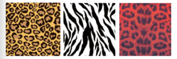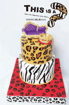 上の段は豹柄。下の段はゼブラ柄。ケーキを置く台は赤色の豹柄