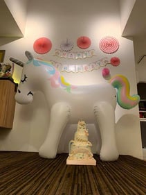 子供の誕生日にユニコーンペガサスの風船みたいな置物(上記画像)を飾ってパーティするので、それに合わせた3段くらいのケーキをお任せでお願いしたい。