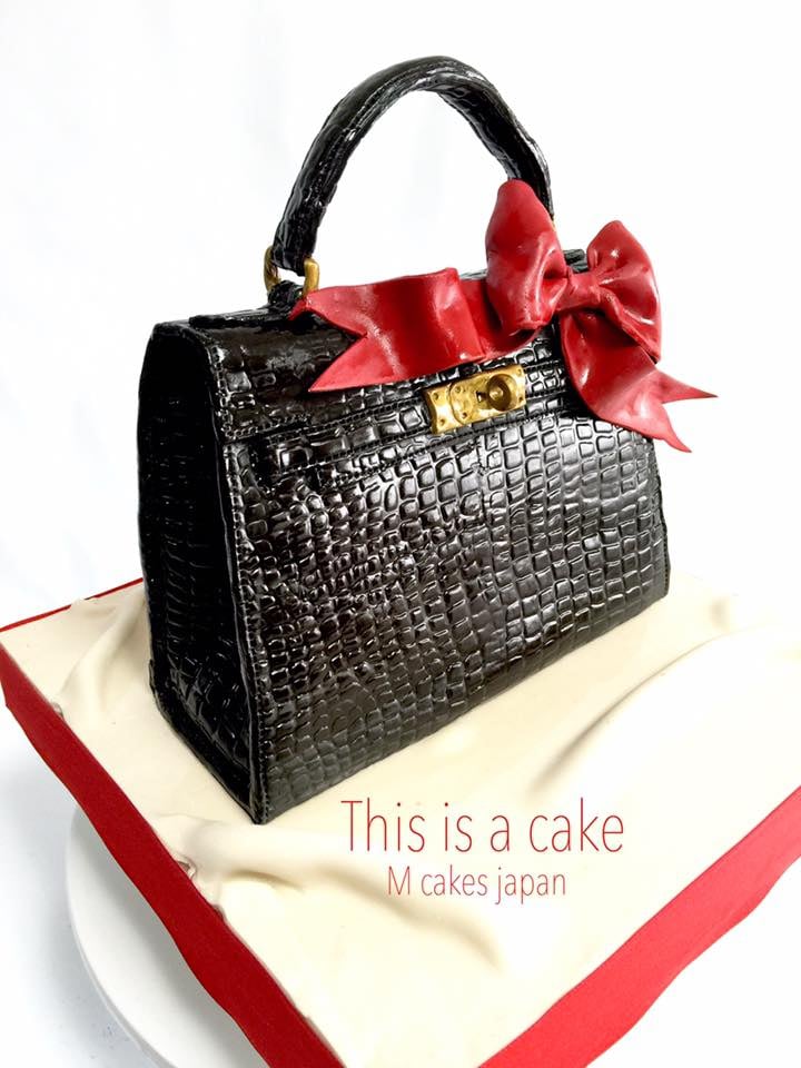 還暦のお祝いに 赤いリボンのクロコ柄ケリーバッグ風ケーキ🎂 東京へお届けです✈️