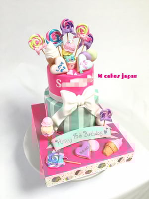 2016/06/01 クルクルキャンディやパフェ、マカロン ソフトクリーム 可愛いスイーツな2段ケーキ クルクルキャンディやパフェ、マカロン ソフトクリーム 可愛いスイーツな2段ケーキ🍭🍬🍨🍦 ポップカラーとパステルカラーを組み合わせて キュートに💕 クッキーやマカロンも本物ではなくお砂糖細工😋 可愛くって自分も欲しくなってしまいました笑 東京都へお届けです。 tagPlaceholderカテゴリ: クルクルキャンディやパフェ, マカロン, ソフトクリーム, 可愛いスイーツな2段ケーキ