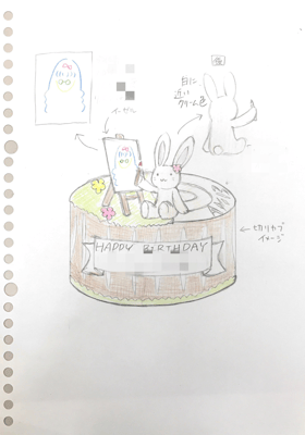 2016/06/15 お客様のデザイン画をそのまま製作 ケーキ お客様のデザイン画を なるべくそのままにケーキで再現させていただきました🎶 切り株に可愛いうさぎが座って絵を描いている風景🐰 可愛い💕 デザイン画がまた上手でケーキ製作に力が入ります!😊 北海道 道内へお届けです🚛 tagPlaceholderカテゴリ: ケーキ, オリジナル, デザイン画, 切り株, うさぎ