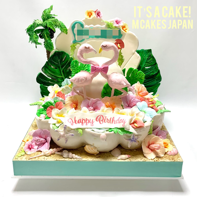 お客様デザインのとても可愛い「ハワイイメージ」なケーキ