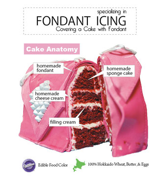 fondant: A powdered sugar based confection that covers the outside of the cake.